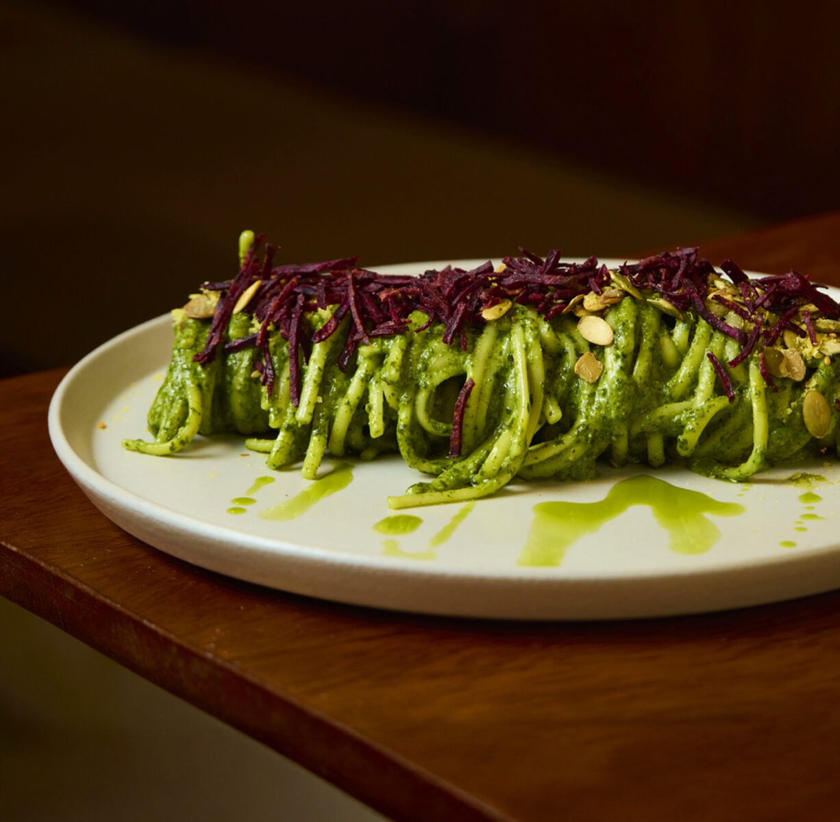 Fácil e sofisticada, essa massa com pesto e missô é perfeita para uma refeição vegana