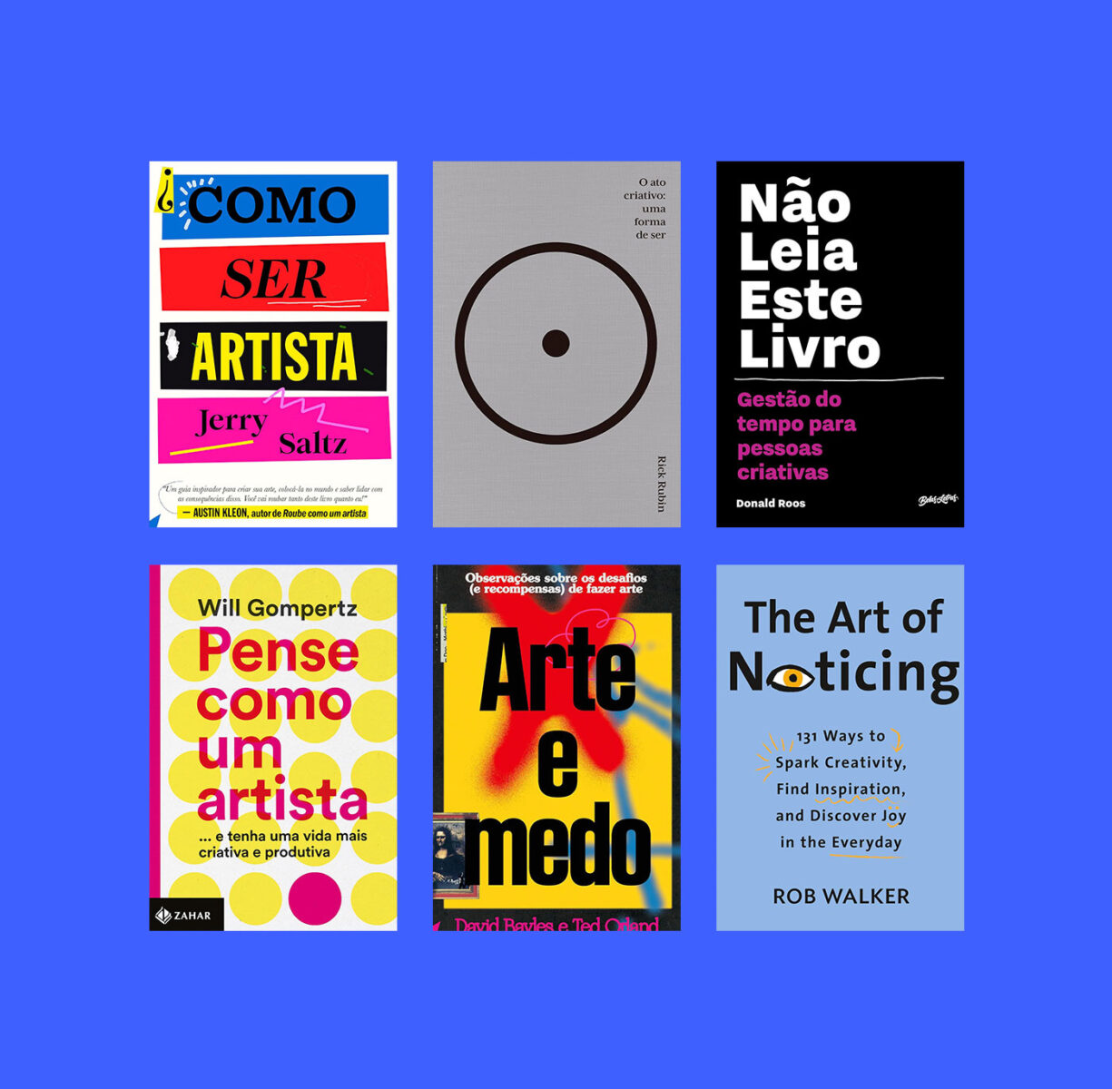 Para quem busca um olhar mais histórico, uma boa dica é “Pense Como um Artista: …e tenha uma vida mais criativa e produtiva” (Zahar, 2015). Descrito como “o melhor professor que você já teve” pelo jornal inglês Guardian, o jornalista Will Gompertz escreve com base em sua experiência acompanhando grandes artistas, diretores, escritores, músicos, atores e designers. Ao encontrar traços comuns entre esses criativos, o autor convida o leitor a adotar posicionamentos semelhantes, como autoconfiança e persistência, para então estimular seus próprios talentos. Michelangelo, Van Gogh, Duchamp, Picasso, Andy Warhol, Ai Weiwei e Marina Abramovic estão entre os exemplos analisados.
