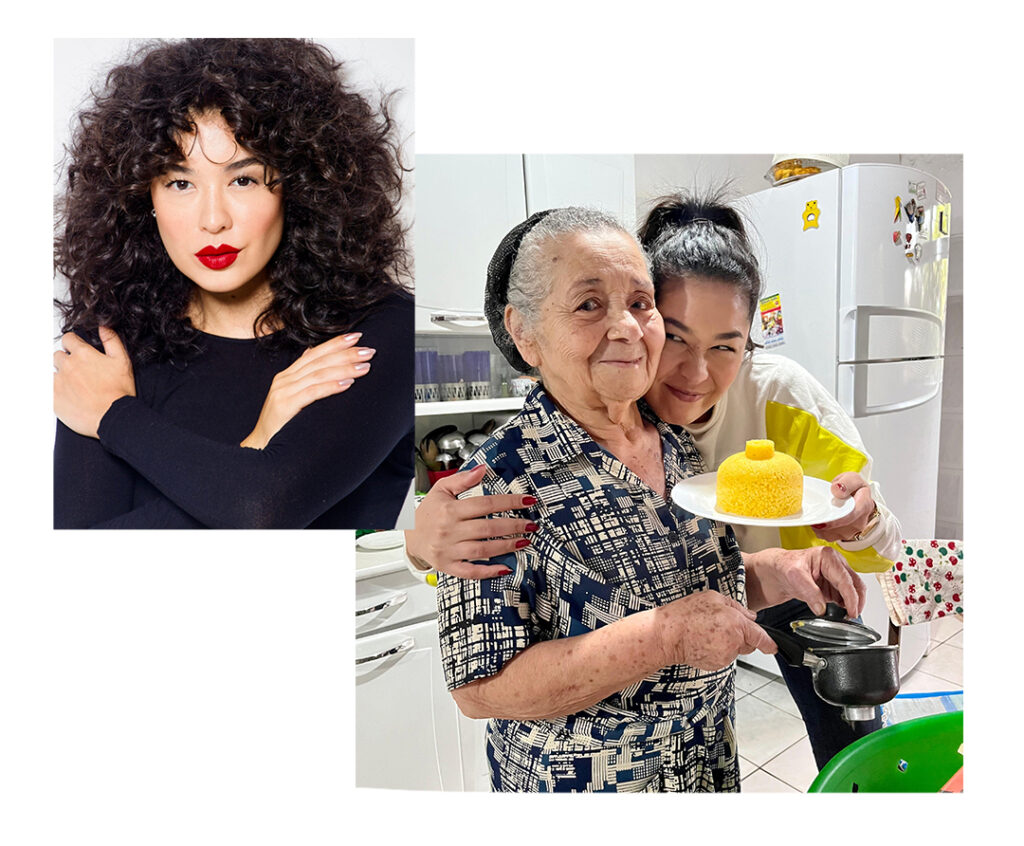 “Sou neta de japoneses por parte de pai e de brasileiros nordestinos, negros e indígenas por parte de mãe. Cresci mais próxima da família materna, com quem passava os finais de semana e os dias comuns. Aprendi muito, vendo de perto o que é força, resiliência, alegria e luta. Do lado paterno, minha avó faleceu três anos antes de eu nascer, sou de 1983, e meu avô, anos depois, voltou a morar no Japão e faleceu lá, enquanto eu ainda era criança. Não convivi muito com ele. Era difícil ter acesso ao Japão naquela época, mas isso nunca me afastou do que herdei. Ao contrário, cresci com a vontade de saber mais, de entender de onde vim, de me reconhecer nessa mistura que carrego no meu fenótipo, no corpo e na história. Meu maior sonho hoje é conhecer o Japão. Hoje, só minha avó materna está viva. Ela mora no sertão da Bahia, em Oliveira dos Brejinhos, estive lá há três anos e nos falamos sempre por telefone. Ela acompanha minhas novelas, vibra com cada trabalho novo e me incentiva muito. Dona Vivi é uma das minhas maiores torcedoras.” Bruna Aiiso é atriz e está no ar na novela “Vale Tudo”.