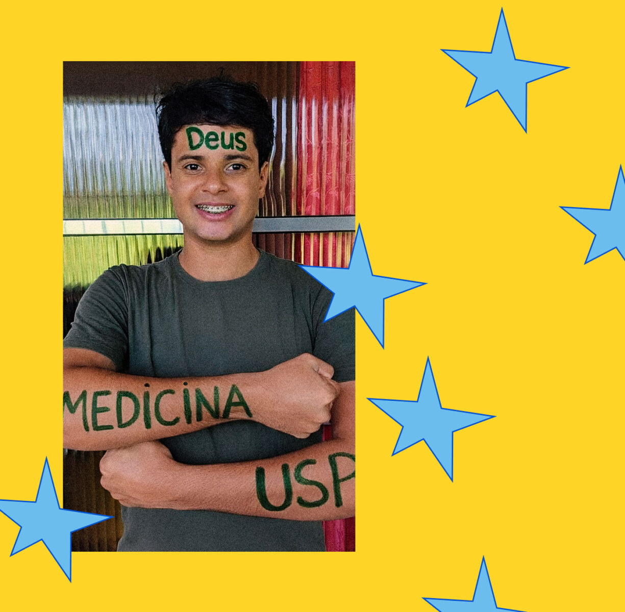 “Eu acho que o sonho de estudar Medicina na USP começou a ganhar mais contornos de realidade quando eu entrei no ensino médio. Também tem muita relação com o meu processo de conversão enquanto cristão. Foi nesse meio tempo que comecei a observar e ver as coisas com outros olhos — não só a questão educacional, mas a vida como um todo. Eu sempre gostei de estudar, mas quem vem do ensino público sabe que o estímulo não consegue ser mantido de forma sustentável por muito tempo. No meio do caminho surgem pedras: problemas pessoais, dificuldades na escola, falta de professor, criminalidade que impede aula, greve, uma série de situações que fogem do nosso controle.