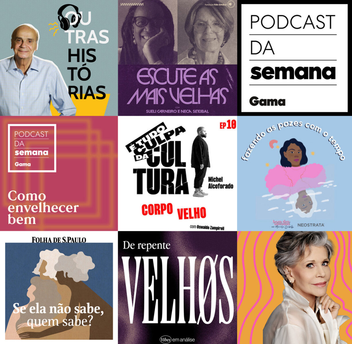 • Sem anunciar o envelhecimento como assunto principal, o podcast Escute as Mais Velhas, com Neca Setubal e Sueli Carneiro debate perspectivas geracionais e o legado que ambas querem transmitir. No episódio de estreia, elas conversam com a linguista Branca Vianna sobre a importância de registrar as histórias de mulheres que moldaram o país. Nos episódios seguintes, assumem o papel de entrevistadoras para falar com referências do feminismo brasileiro como Conceição Evaristo, Heloísa Teixeira e Luiza Trajano, em conversas que valorizam a experiência acumulada como um patrimônio que precisa ser ouvido e preservado.
